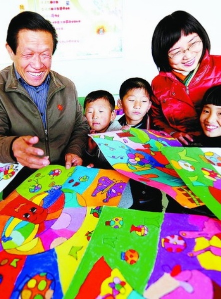 11月13日,河北省廊坊市华昊运输集团个体运输户刘贺明(左一)为特殊教育学校的孩子们送书及学习用品。廊坊市自开展创先争优活动以来,涌现出一大批爱岗敬业,服务社会,争当好市民,人人献爱心的先进典型。