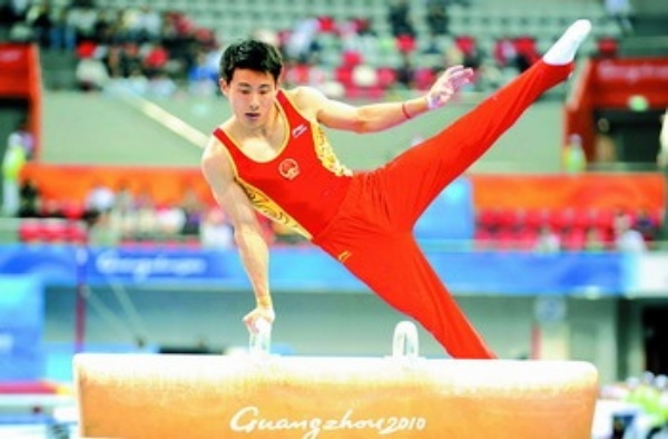 | 左图 11月15日,中国选手滕海滨在体操男子个人全能决赛中。当日,滕海滨以91.100分夺得该项目冠军。