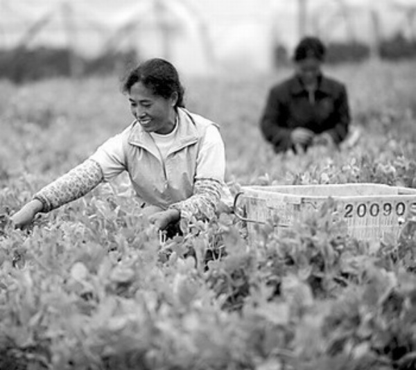 近年来,江西省全南县共建立高山蔬菜标准化示范基地40个,年产值达2.2亿元。图为该县南迳镇大田高山蔬菜基地菜农在采摘豆苗。 新华社记者 周 科摄