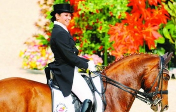 图① 11月17日,阿联酋骑手在马术盛装舞步比赛中。随着悦耳动听的乐曲,选手与自己的骏马翩翩起舞,为观众带来一场视觉盛宴,成为竞技场上一道美丽的风景。