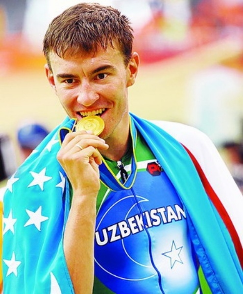 11月17日,在场地自行车男子记分赛决赛中,乌兹别克斯坦选手弗拉基米尔·图伊奇耶夫获得金牌。 新华社记者 李 尕摄