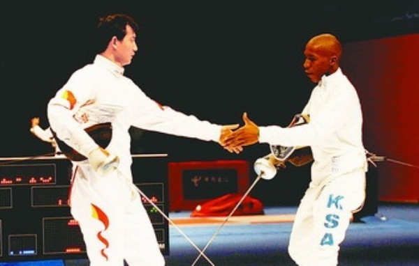 图③ 11月18日,亚运会开始击剑项目的比赛。两名选手在比赛后握手祝贺。