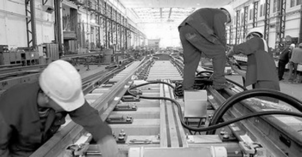 图3: 奥钢联工人在组装高速铁路转辙器。