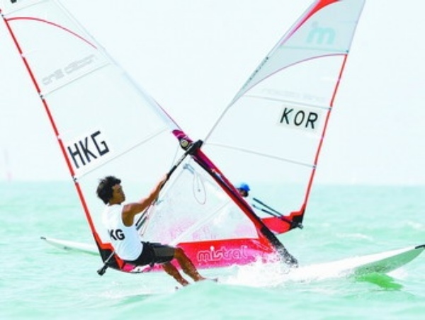 图① 11月20日,中国香港选手陈敬然在男子帆板米氏级比赛中获得冠军。