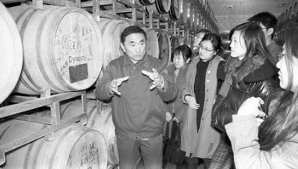 在王朝酒业位于天津的御苑酒堡,工作人员正向游客展示橡木桶储藏方式。通过葡萄酒酿造流程工艺演示、现场品酒等活动,游客在工业游过程中增强了对葡萄酒文化的体验。从葡萄种植园到酿酒的厂区、酒堡,王朝酒业推出的工业旅游项目是天津第一条以“葡萄酒”为主题的旅游线路。不但王朝酒业入围2010达沃斯工业旅游线路,王朝御苑酒堡更被认定为全国工业旅游示范点。以红酒文化为内涵,以工业旅游为载体,这条工业游线路为王朝酒业的品牌带来了巨大的宣传推广效应。 (李 慧)