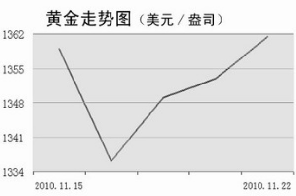 虽然美元指数在上周一度触及了七周以来的高点78.71,但随着爱尔兰债务危机在欧盟和国际货币基金组织启动援助程序下有望得到缓解,市场对欧元区的信心有所恢复,欧元兑美元反弹,黄金也间接获得支撑。