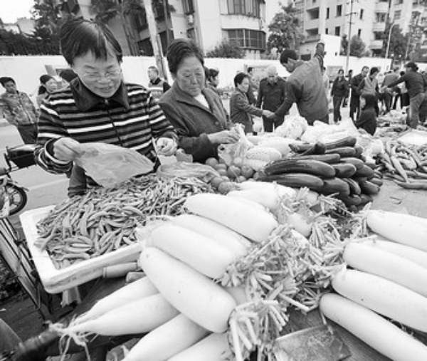 图: 11月25日,市民在福州市一家新开辟的便民蔬菜早市选购蔬菜。面对蔬菜价格上涨,福州市政府紧急采取了加大市场供应量等措施。 新华社记者 张国俊摄