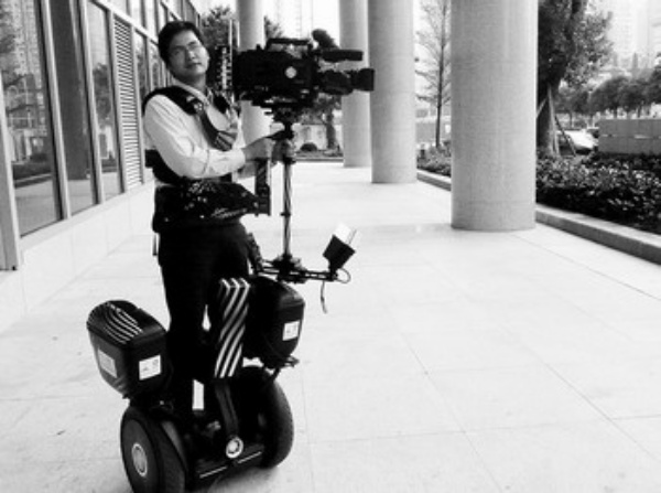 在11月9日的广州亚运会圣火传递中,有一辆引人注目的两轮小车,摄像师肩扛摄像机操纵小车自由前进后退,跟随圣火移动拍摄,全身上下并没有一根线和后方连接。但你可知道,他一个人就相当于过去的一整台转播车,拍下的画面已经实时通过广东电视台进行了直播。