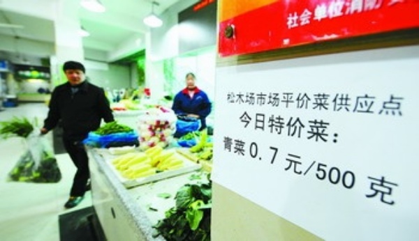 按照市政府的布置,昆明市在居住人口3000人左右、周边1公里范围内没有农贸市场的居民居住地设置一个平价菜直供点,近300个直供点在今年12月31日前要全部建成并供应蔬菜。下一步,这300个直供点将逐步发展成固定的、200平方米左右的生鲜菜超市。昆明市副市长阮凤斌说:“昆明市要多措并举,确保市民吃上放心、便宜菜。”