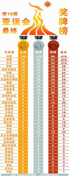 图为亚运奖牌榜