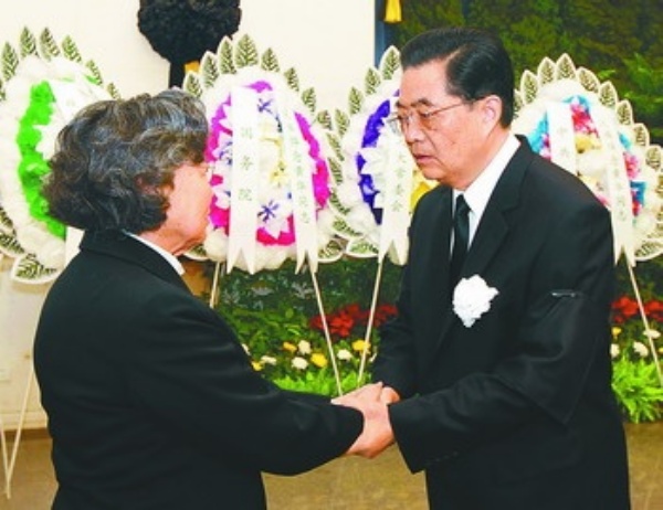 上午10时许,胡锦涛、吴邦国、贾庆林、李长春、习近平、李克强、贺国强、周永康、王刚、王兆国、回良玉、刘淇、张德江、徐才厚、李瑞环、李岚清、曾庆红、吴官正、罗干、何勇、令计划、华建敏、陈至立、李建国、司马义·铁力瓦尔地、梁光烈、戴秉国、曹建明、钱运录、万钢和迟浩田、王汉斌、布赫、司马义·艾买提、许嘉璐、顾秀莲、热地、唐家璇、宋健、胡启立、徐匡迪,以及李继耐、廖锡龙等,在哀乐声中缓步来到黄华同志的遗体前肃立默哀,向黄华同志的遗体三鞠躬,并与家属一一握手,表示慰问。中央和国家机关有关部门负责同志,以及黄华同志的生前友好和家乡的代表也前往送别。