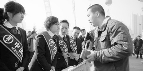 图为11月28日青海省银监局组织青海省银行业金融机构开展以“多一份金融了解,多一份财富保障”为主题的2010年银行业公众教育服务日活动。图为一名市民正在向农行员工咨询。