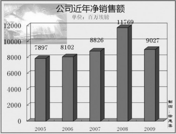 国际金融危机爆发后,与大多数钢铁企业一样,伊兹钢铁公司面临着诸多风险和挑战,国内、国际钢材市场需求骤减,钢材价格下滑。这些因素直接导致了伊兹钢铁公司经营业绩大幅下滑。2009年,公司销售额仅为90亿埃镑(1美元折约5.75埃镑),同2008年相比大幅下滑,公司净利润也出现了近8成的下滑。可以说,国际金融危机给公司带来了巨大冲击。