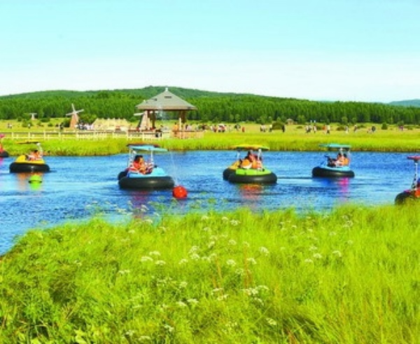 图2: 市民们在湿地公园驾船畅游。 (本版图片由赵 晶摄)