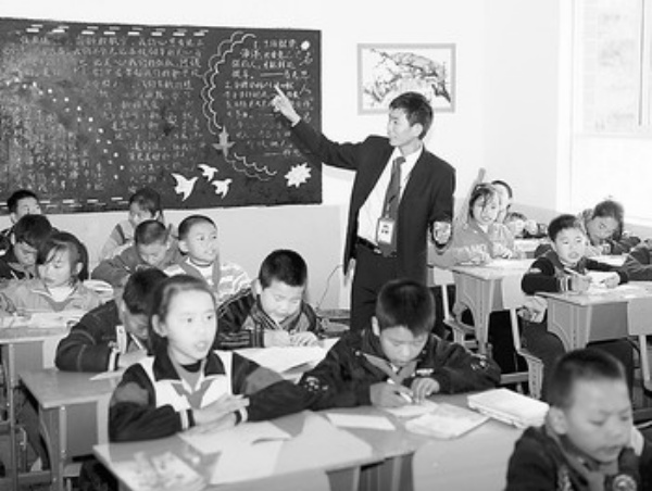 贵州省遵义县马蹄镇平大境界希望小学,学生们正在新建成的教室里上课。这所由茅台水立方酒公司捐建的希望小学,给268名小学生提供了良好的学习环境。 陈 莉摄