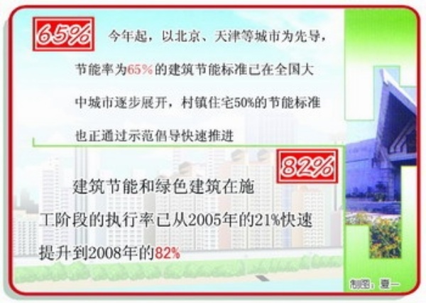 近年来,绿色建筑在我国各地开始推广并取得初步成效。从建筑单体节能走向社区和基础设施的整体节能,从追求绿色居住场所走向推进生态城市建设,从绿色技术硬件的推广应用走向绿色社会风尚的倡导形成,绿色建筑日益引起社会广泛关注。今年起,以北京、天津等城市为先导,节能率为65%的建筑节能标准已在全国大中城市逐步展开,村镇住宅50%的节能标准也正通过示范倡导快速推进。