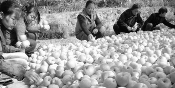 但果农们关心的,则是苹果验级时的宽松。一般情况下,果形好,没有任何伤疤,并且红色面积至少达到90%以上的苹果,才会被果商们以商品果的价格收购,挑拣剩下的果子,则一般为水果小商贩们以商品果四分之一左右的价格买走。