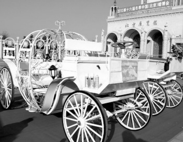 这是12月3日在第十六届冬季中国(北京)婚博会上拍摄的婚车。当日,为期3天的2010第十六届冬季中国(北京)婚博会在北京展览馆开幕,参展商家展开了声势浩大的促销宣传活动。