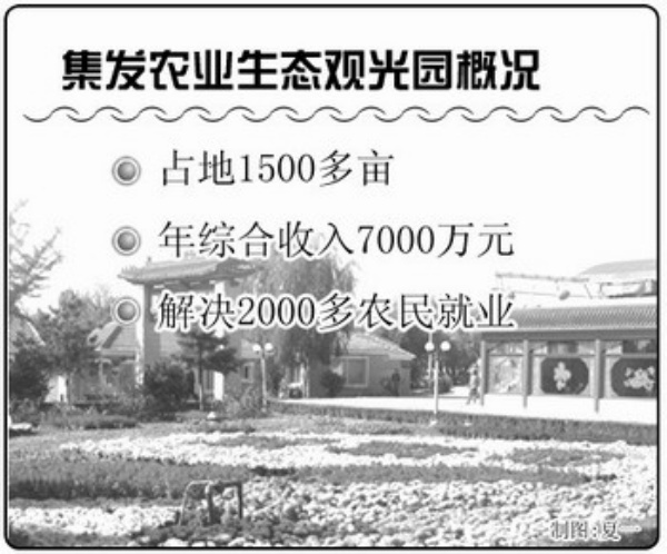 多年来,这个由农民集约土地开办的生态观光园,通过种植绿色果菜品种、发展现代观光农业、吸引群众体验参与、开办特色餐饮服务等4个方面增收创收,生产经营产生了多重叠加效应。占地1500多亩观光园年综合收入达7000万元,解决了2000多名农民的就业,还为北戴河风景名胜区增加了一个非常有吸引力的旅游景区,可谓一举多得。