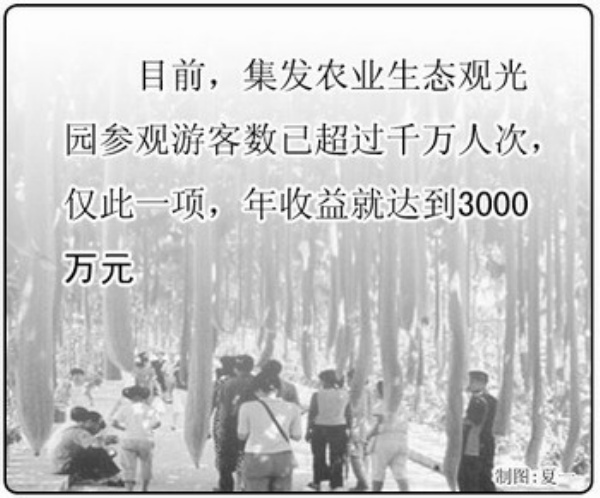 开园10多年,游客数超过千万人次,观光收益达到3000万元,现代高科技农业观光产业不但成为农民增收新途径,也成为当地旅游产业的有益补充。