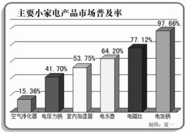 “然而,从每户家庭的拥有量来看,我国家庭的小家电产品保有量仍然偏低。因此,小家电市场仍具有巨大开发潜力。”中国家用电器协会信息咨询部部长胡晓红分析说,“目前,发达国家平均每户家庭的小家电拥有量近40种,而我国大中城市每户家庭小家电平均保有量还不到10种,市场容量远未饱和。”