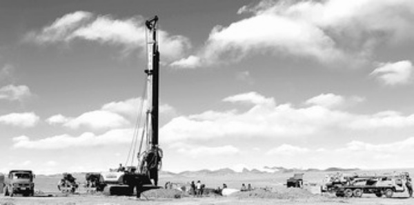 12月12日,青藏联网工程建设者在唐古拉山冻土区架设“电力天路”。 根据计划,青藏联网工程将于2011年立塔架线,2012年调试投产。 祁正吉摄 (新华社发)