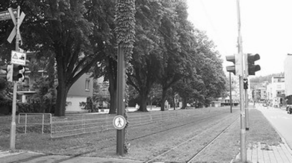 这条东西走向的大街被称为“沃邦大道”,它是小区内惟一的公共通道。从东往西看,它承载着三种功能:公路、有轨电车和渗水渠。在路面的分配上,大约各占三分之一。因为有轨电车是在绿地上行驶,渗水渠的表面长满了鲜草,所以绿色成了这条大道的主旋律。加上家庭花园和房前屋后的绿化与鲜花,以及儿童的游戏场所和休闲场地全部建在草坪之上,给人一种非常舒适的感觉,让紧张的神经得以放松。为了保持小区新鲜的空气,南北走向上每隔一段距离都将楼距拉开七八十米。这中间的场地既是消夏聚会的场所,又是小区与外界空气流通的通道。