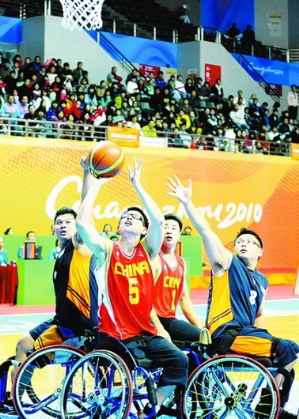 图③ 12月16日,中国队和马来西亚队在男子轮椅篮球小组赛中。