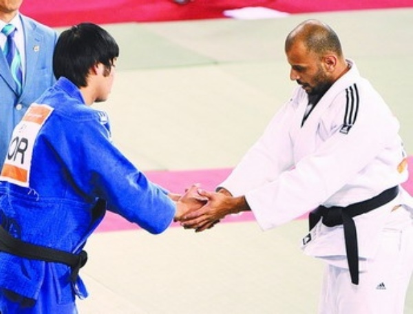 图⑤ 12月16日,在盲人柔道男子73公斤级比赛后两位选手握手致意。
