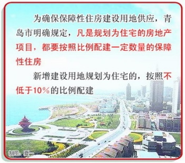 青岛市住房保障中心副主任刘巍琪告诉记者,多年以来,他们始终将保障性住房建设作为一件大事来抓。为了确保保障性住房的建设数目,青岛市规定,新增建设用地规划为住宅的,按照不低于10%的比例配建。同时,不适宜配建的土地,要提取相应比例土地收益用于集中建设项目用地的征收补偿。