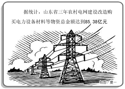 据统计,山东省三年农村电网建设改造购买电力设备材料等物资达到85.38亿元。使用各种导线6.95万吨、电力电缆3.27万千米、水泥电杆153.55万根、电力变压器12067台等,有力地带动了相关产业的发展。