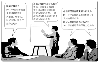 申银万国证券研究所分析认为,从全球比较的角度来看,2011年中国经济基本面仍然会好于其他新兴市场。国金证券研究所也分析认为,2010年打下的坚实基础,为未来经济转型提供了前提条件,2011年宏观经济将保持上行势头。