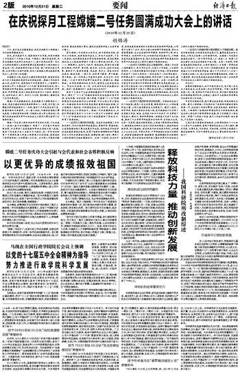在庆祝探月工程嫦娥二号任务圆满成功大会上的讲话