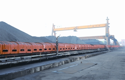 12月21日,江苏连云港一家火力发电厂的煤炭储备场运输系统忙着运送电煤。 近日来,各地抓紧调运电煤增加储备,在新一轮寒潮天气来临之际确保满足群众用电需求。 耿玉和摄(新华社发)