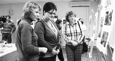 在“中国图片展”上,参观者正认真观看反映中国建设成就的图片。 李垂发摄