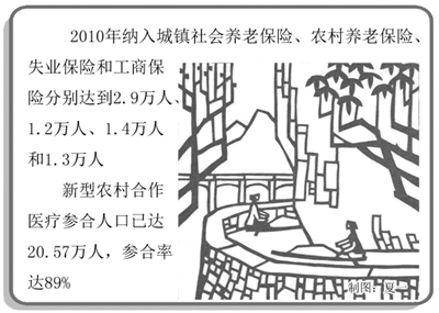 清原的社会保险覆盖面进一步扩大,2010年纳入城镇社会养老保险、农村养老保险、失业保险和工商保险分别达到2.9万人、1.2万人、1.4万人和1.3万人。新型农村合作医疗参合人口已达20.57万人,参合率达89%。城市最低生活保障两次提标扩面,现已保障488户、9844人,占非农人口的8.9%;农村最低生活保障4次提标扩面,现已保障9084户、1.56万人,占农业人口的6.5%。提高了农村“五保”人员保养水平,集中和分散供养的分别提高了1500元和1000元的供养标准。