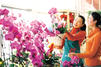 12月23日,位于北京顺义区杨镇的国际鲜花港,百余种精品花卉竞相绽放,吸引了不少市民前来观赏和选购。当日,首届(北京·顺义)精品年宵花展销会举办,展示北京及其周边地区的近100个优秀品种年宵花卉。 本报记者 赵 晶摄