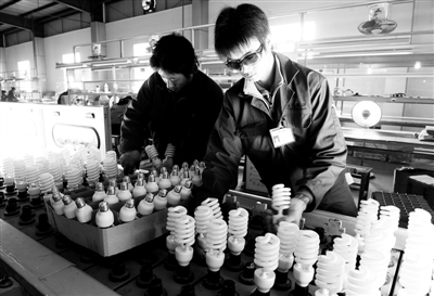 12月23日,工人在节能灯生产流水线工作。河南三门峡鹏飞电子有限公司近年来大力发展节能新光源产品的推广使用,市场前景广阔。 新华社记者 朱 祥摄