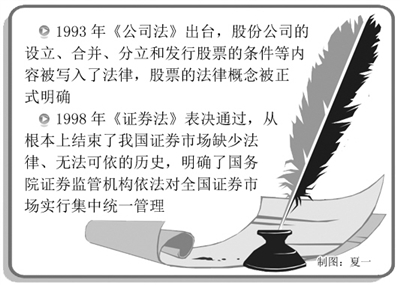 20年间,我国证券市场发展迅速,融资规模和交易量屡创新高,法制建设取得了巨大成就,初步形成了与“新兴加转轨”市场特点相适应的、相对完整的法律法规体系。
