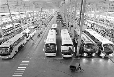 图为厦门大金龙大客车组装线。 张永定摄