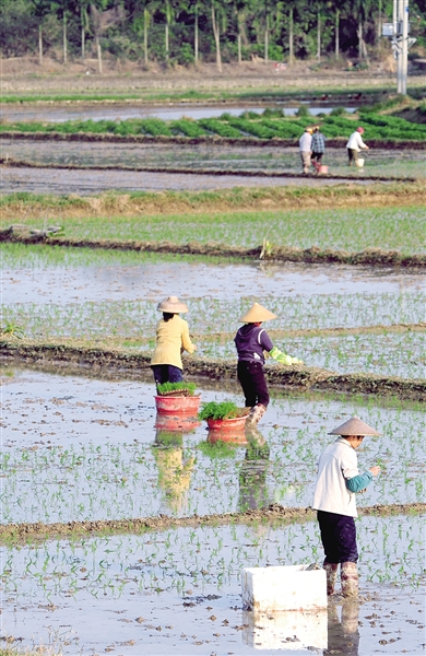 12月27日,海南琼海市嘉积镇的农民在田间插秧。临近岁末年初,北方正是天寒地冻,但海南省各地已进入春耕忙碌时节,田野上随处可见繁忙的早稻插秧场景。 蒙钟德摄(新华社发)