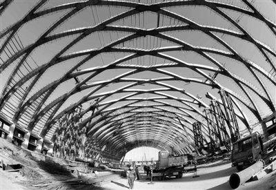 12月28日,施工人员在进行内部装修工程的施工准备。入冬以来,约有5000名施工人员克服冬季施工的各种困难,加班加点奋战在天津西站建设工地。据介绍,建成后的天津西站将和天津地铁1号线、4号线、6号线等多条轨道交通实现“零换乘”。同时,还可联通京津城际、京沪、津秦等高速铁路。 新华社记者 刘海峰摄
