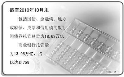 从机构需求看,商业银行是银行间债券市场的最大持有者。中债网数据显示,截至2010年10月末,包括国债、金融债、地方政府债、央票和信用债的银行间债券托管总量为18.63万亿,而商业银行托管量为13.95万亿,占比达到75%。而明年,商业银行可用于债券投资的新增资金较2010年或有所减少,投资债市的需求将会结构化调整。随着保费收入增加和收益率上行,保险资金对债券的配置需求将较2010年会继续扩张。受市场流动性影响,基金债券需求或许有所下降。