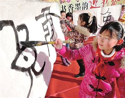 2010年12月31日,济南市闫千户小学的学生在表演《闹天宫》。 新华社记者 朱峥摄