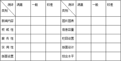 (1)版面设置 (2)新闻选题 (3)深度报道(4)写作手法 (5)版式设计 (6)标题风格 (7)图片图表使用 (8)印刷质量(9)其他( )