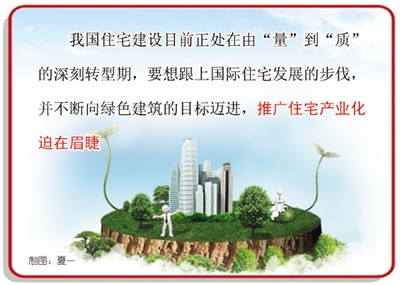 住房和城乡建设部副部长仇保兴表示,我国住宅建设目前正处在由“量”到“质”的深刻转型期,要想跟上国际住宅发展的步伐,并不断向绿色建筑的目标迈进,推广住宅产业化迫在眉睫。
