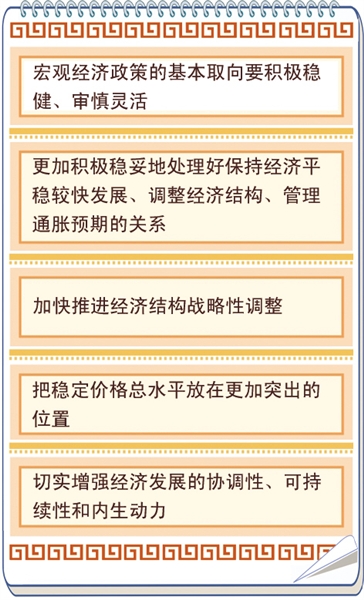 日前召开的央行货币政策委员会2010年第四季度例会强调,2011年要认真实施稳健的货币政策,增强金融调控的针对性、灵活性、有效性,把稳定价格总水平放在更加突出的位置。要按照总体稳健、调节有度、结构优化的要求,综合运用多种货币政策工具,把好流动性这个总闸门,引导货币信贷向常态回归,实现合理适度增长。要把信贷资金更多投向实体经济特别是“三农”和中小企业,促进经济结构战略性调整。