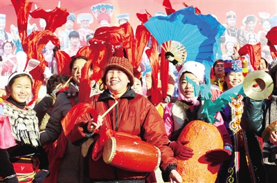 1月1日上午,北京朝阳区祁家豁子社区居民来到中华民族园,参加喜迎新年的活动。 本报记者 赵 晶摄