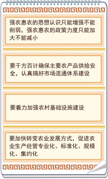 韩长赋说,为完成中央经济工作会议提出的推进发展现代农业,确保农产品有效供给的重大任务,今年要重点做好这几方面的工作: