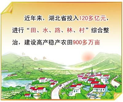 寒冬时节,走在荆楚广袤的田野上,只见田成方、林成网、路相通、渠相连,让人心里敞亮。近年来,湖北省投入120多亿元,进行“田、水、路、林、村”综合整治,建设高产稳产农田900多万亩。通过改善农业生产条件,提高了基本农田的生产能力,也为农民增收创造了有利条件。
